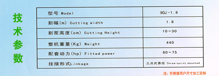 9GJ系列旋轉(zhuǎn)型割草機主要適用于草地、灌木林地的割草、清理以及地表不平整的牧場的更新、改造等作業(yè)。